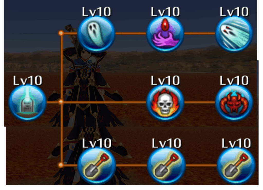 - スキルが上がれば上がるほどグレイブディガーから離れても霊スタックが回復する範囲が広がる