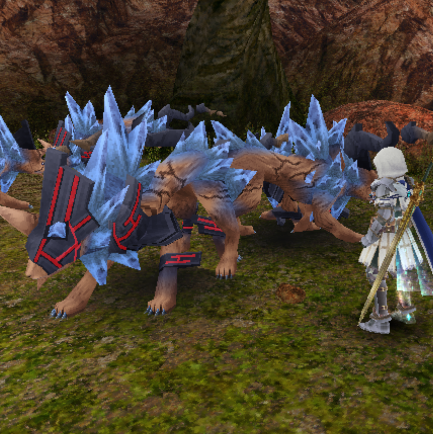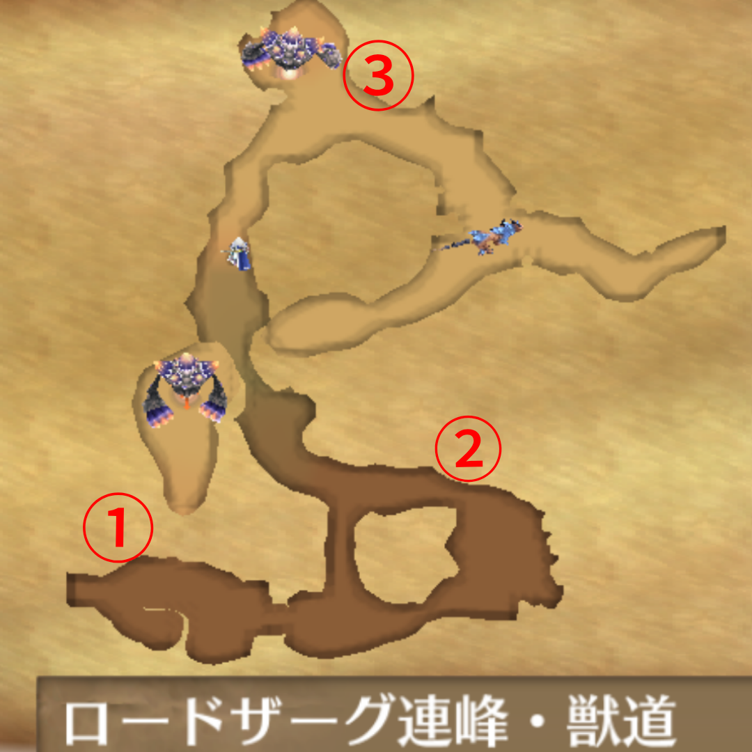 ちょっと問題がありますが、ここも全種プレビュー狩りができます。上図マップの数字の位置からモンスターの方向を向いてプレビューに移行し、アクセルブレード連打がいい感じでした。沸き場の間隔が広いため他のモブに突っ込まないのはありがたいですね。ただし①は高台に登ってアクセルブレードでは降りれなくなったり、③では壁向こうのモブをロックしてひっかかる場合があるので注意です。
